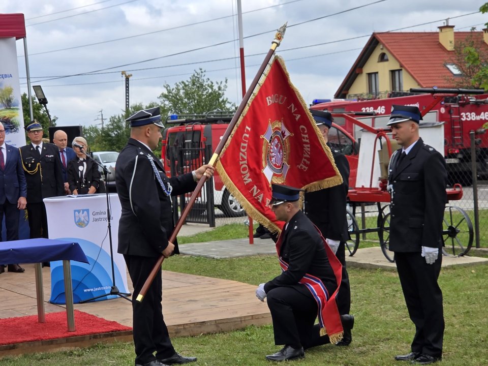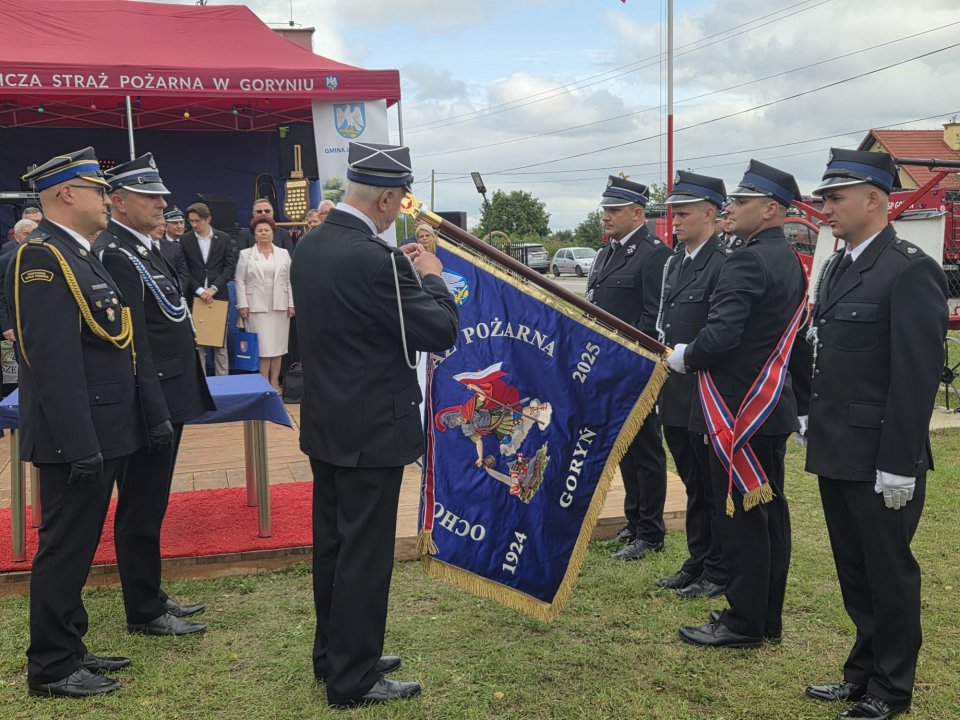 W imieniu mieszkańców Gminy Jastrzębia i Fundatorów sztandar dla jednostki Ochotniczej Straży Pożarnej w Goryniu przekazała delegacja w składzie: Wojciech Ćwierz – Wójt Gminy Jastrzębia, Hanna Cencelewicz – Sołtys Wsi Goryń i Radna Gminy Jastrzębia oraz Agnieszka Wójcik – Radna Gminy Jastrzębia. Wręczenia sztandaru na ręce Druha Kamila Wójcika dokonał Druh Zbigniew Gołąbek członek Prezydium Zarządu Głównego Związku Ochotniczych Straży Pożarnych, Wiceprezes Zarządu Oddziału Wojewódzkiego ZOSP RP w Warszawie w asyście Druha Pawła Tuzinka członka Prezydium Zarządu Oddziału Wojewódzkiego Województwa Mazowieckiego Związku Ochotniczych Straży Pożarnych Rzeczpospolitej Polskiej w Radomiu, Prezesa Zarządu Oddziału Powiatowego ZOSP RP w Radomiu.