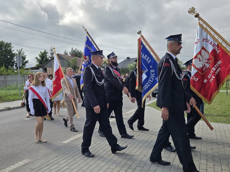 Po zakończeniu Eucharystii barwny korowód, prowadzony przez orkiestrę, w asyście pocztów sztandarowych i mieszkańców, przeszedł pod strażnicę. Tam odbyła się ceremonia przekazania nowego sztandaru, który został wręczony strażakom. Uroczystość prowadziła i przybyłych gości powitała Małgorzata Skwarek.